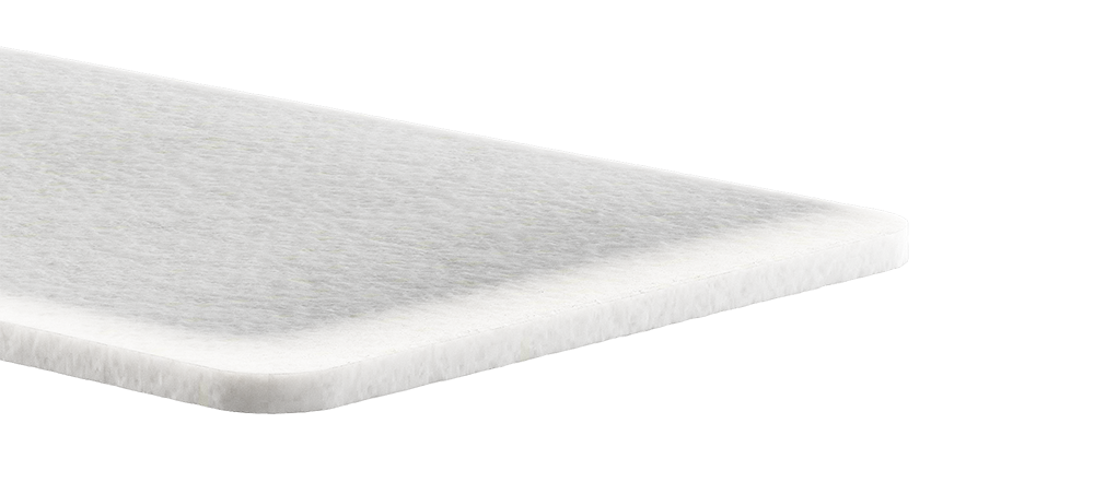 Нетканный материал струттофайбер толщиной 3 см. используется в качестве замены пенополиуретана (ППУ) для придания плотности и пружинистости. Материал обладает прочностью и износостойкостью.